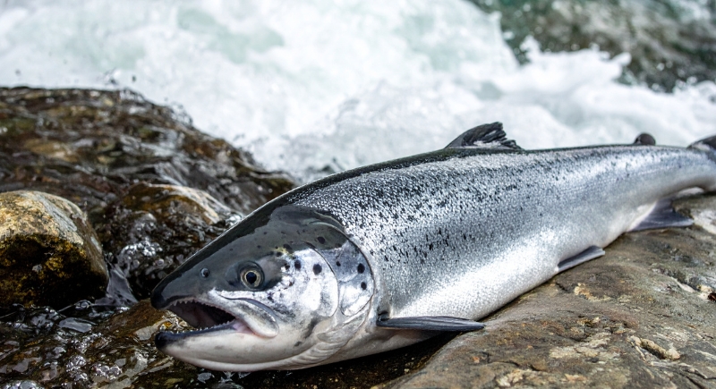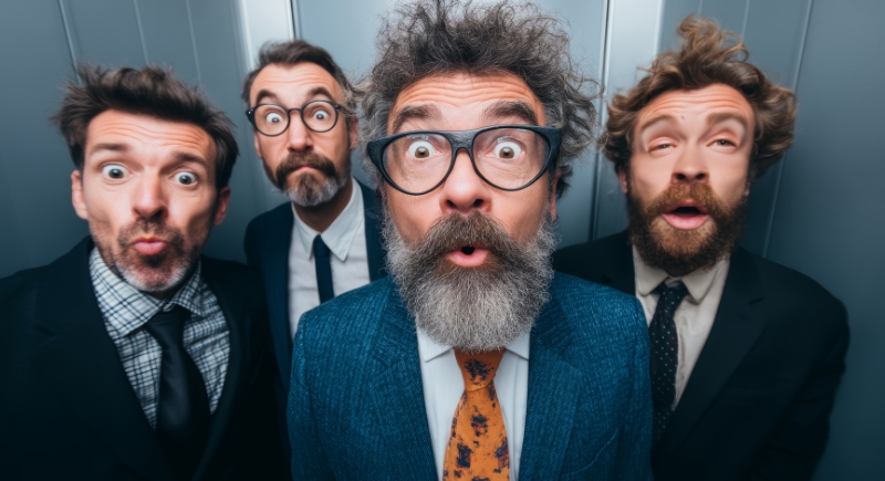 Surprised Executives with Freshly Caught Salmon