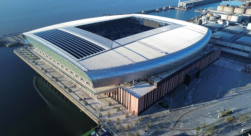 Rising on Liverpool’s waterfront, Hill Dickinson Stadium gives Everton a modern home with a serious presence. Built at Bramley Moore Dock, it blends brick, steel, and dockland history into a sharp new arena. With 52,769 seats, steep stands, and river views, matchdays here feel tight, loud, and built for big Premier League nights.