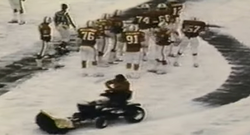 Late in a snowy Patriots–Dolphins matchup, New England coach Ron Meyer instructed snowplow operator Mark Henderson to clear a small path for a 33-yard field goal. The kick succeeded, giving the Patriots a 3-0 win. The move was legal at the time but became one of football’s most controversial moments.