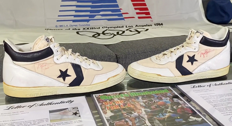 Converse Fastbreak sneakers worn by Michael Jordan during the 1984 Olympic Games remain a serious collector’s prize. Jordan rocked this model before signing with Nike, giving the pair significant historical weight. A game-worn, signed set sold at auction for about $190,000, proving pre-Air Jordan history still pulls strong interest.