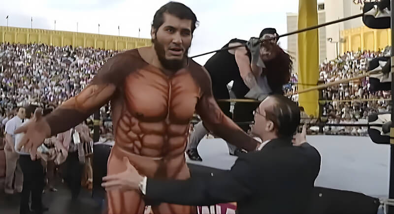 Nearly eight feet tall in his muscle suit, Giant Gonzalez remains one of WrestleMania’s most baffling sights. That ridiculous costume at WrestleMania IX would be memorable by itself, but his in-ring work made it so much worse. Every movement looked labored, and his strikes had no impact. The Undertaker tried everything to drag something watchable out of their feud, but Gonzalez couldn’t keep up. Their match ended with a disqualification because WWE had no other escape route.